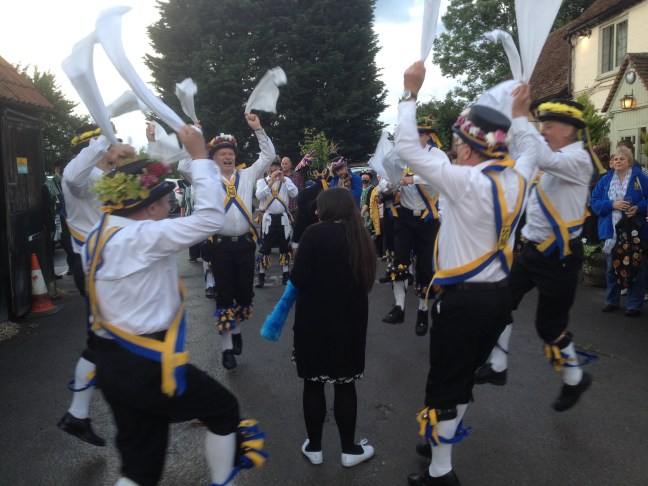 A leaving barmaid was our ‘Maid of the Mill’, all the men ‘doffing their hats’ in honour of our maid except for one who ignored the call and ended up generally groping the poor lass before realising he was on his own….snigger… The Crown All warmed up now, both sides worked hard on some good looking dancing, roared on by the noisy fool. Wendy & Fred have been longtime friends of YMM and this was their last night running the pub, so it was brilliant to be able to send them off in style! Irritated Fool later found that some git in the audience had a bought a badge with a couple of golden euro cents coins AND got 50p in change …chuntering outrage…. Horse particularly active taking all sorts of liberties with ladies who seemed quite happy with the attention! We all went side for a lively old music session.