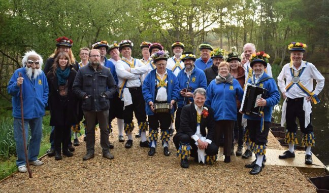 Started with Bumpus, Ring O’ Bells (first pubic outing!), a brave Yateley Heath, Idbury Hill and Highland Mary. A very pleasant set. The sun twinkled through the trees over the pond. Final dance was our new ‘joinny-inny’ hand clapping dance based (loosely) on ‘Shepherd’s Hey’ Adderbury which WENT WELL, culminating in a dance procession down to the pond for the ‘Hal and Tow’ May song, commendably led by our Timbo. Any semblance of quiet reverence was lost as the lads always burst out laughing at this point,