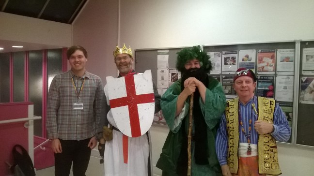 First stop – the Library! Not our normal haunt….. We followed ‘A Christmas Cracker – a miscellany of poetry and prose for the festive season, interspersed with the origins of Christmas traditions’. A pretty stunned audience soon warmed to our noisy and robust antics – although Ross’s dewey decimal ad-lib bombed spectacularly. Ian gave a talk and we all did a song. …. Lovely audience, lovely staff and an opportunity to mingle decorously over refreshments. Basingstoke Discovery Centre