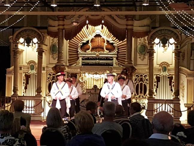Any fear that this would be a bog-standard Ring Meeting were dispelled as we filed into the “Galviolizaal”. Our already nervous mummer debutantes went pale as they saw the stage and a large crowd of Helmonders…. This turned out to be a large shed lined with enormous theatrical organs. Ian Young proved to be very knowledgeable about such items and was able to go ‘backstage’ and arranged for Star Wars theme and God Save the Queen to be played later! An already capacity audience was being warmed up by a young, local singer/guitarist.