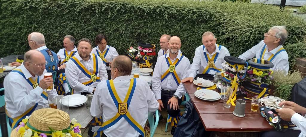 We ended with Myrtle who went down well and Datchet ended with an extended hatless dance for 5 men, which they had invented. Great thanks for an excellent day were expressed by all and our squire donned his camouflage motor cycling pyjamas to ride home on his immaculate bike. Rather than creep away, there was a move for a further Bonny Green before we struggled over to the Royal Stag for a final beer, to be told twice that we could not sit at a table, since it was reserved by a group that had not yet arrived. Their attitude did not affect our huge appreciation of a great day.