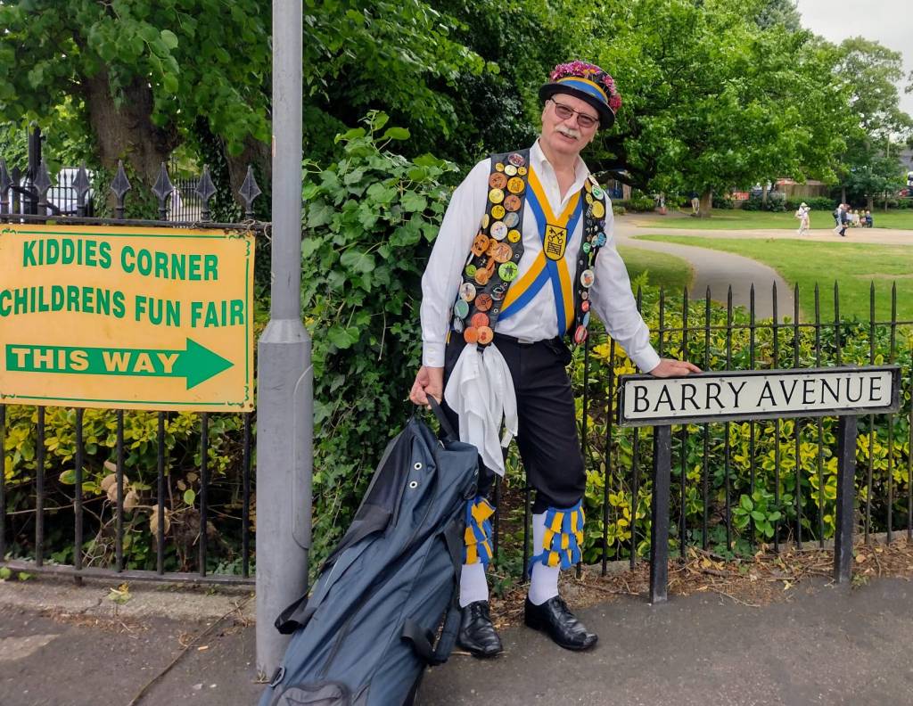 Back through the town and over the bridge to the Waterman’s Arms for sandwiches ( pre-prepared ) and chips ( not prepared ) with some wonderful beer – can’t remember what it was called ! Struggled back to the bridge for a dance or two and along to the Riverside gardens, where all sides performed, again to smaller audiences than in previous years. A short walk to the station and further dances on the green in Datchet.