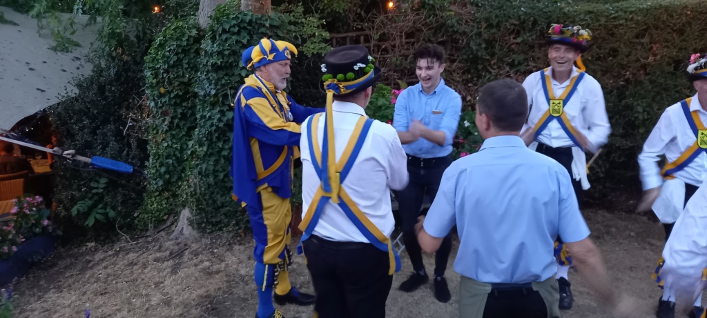 The pub was very generous with free flowing ale for the morrismen including the spectacular Surrey Nivarna from Hogs Back – delicious! And the staff were brilliant. A couple of them readily joined in Sheherds Hey including a very enthusiastic Oli who didn’t stop grinning the whole way through – well done Oli!