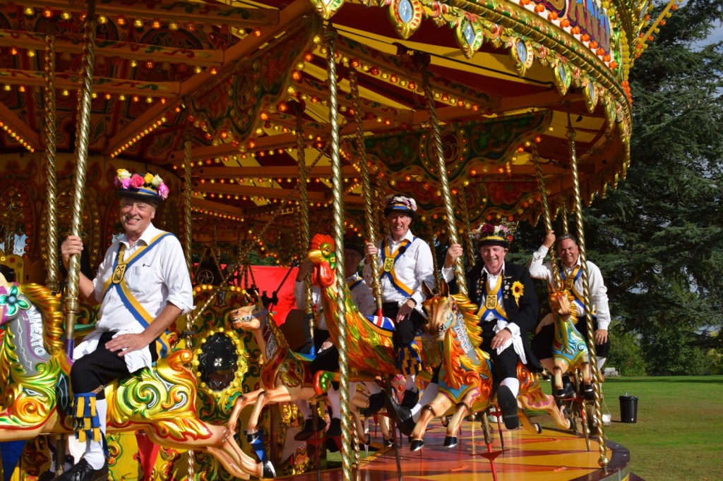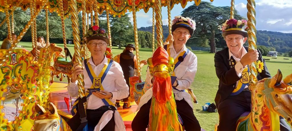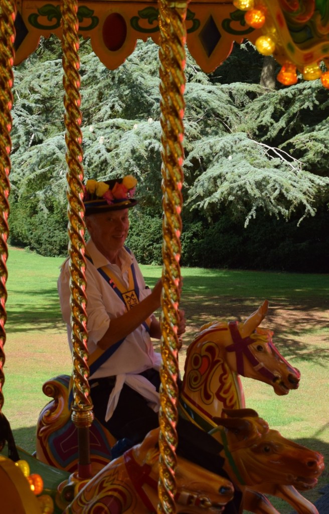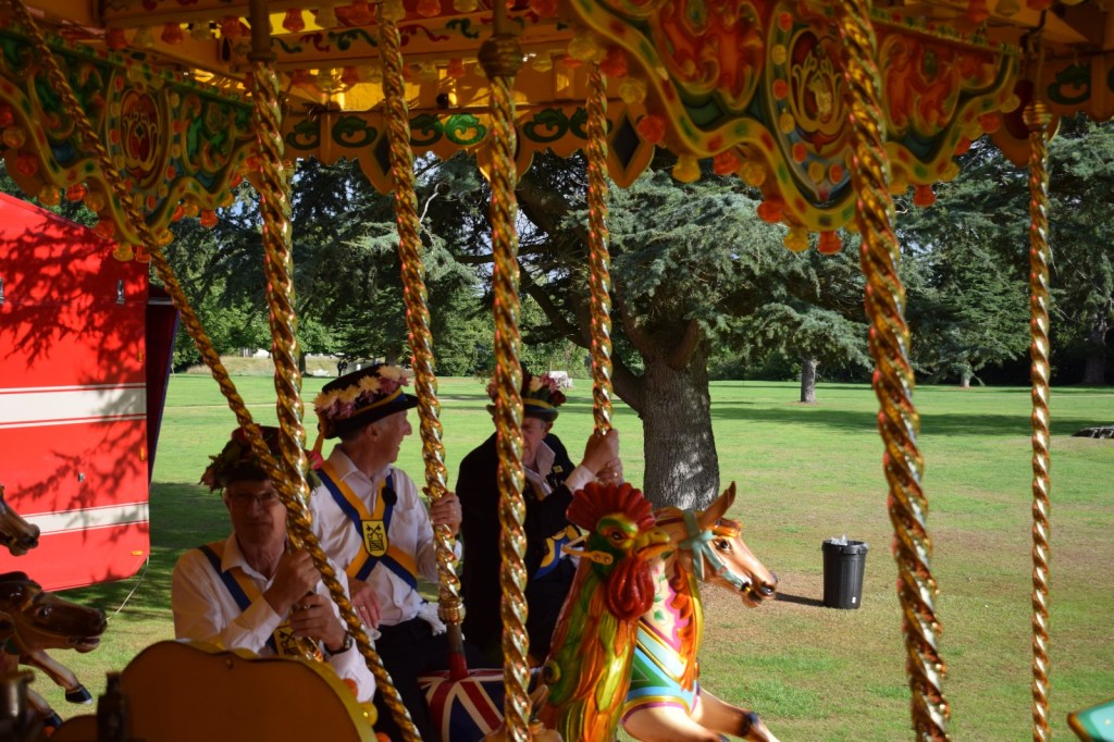 After a break for tea and cake, at 3.30 came time for the final formal spot, this time in the courtyard as no new guests were arriving at the front door. It commencing with a rousing rendition of the British Grenadiers (Skirmish, Adderbury), and finished with a final exertion in the form of the Upton-upon-Severn Stick Dance, whereupon we all headed for our transport – except those overgrown children who were determined to have a ride on the carousel.