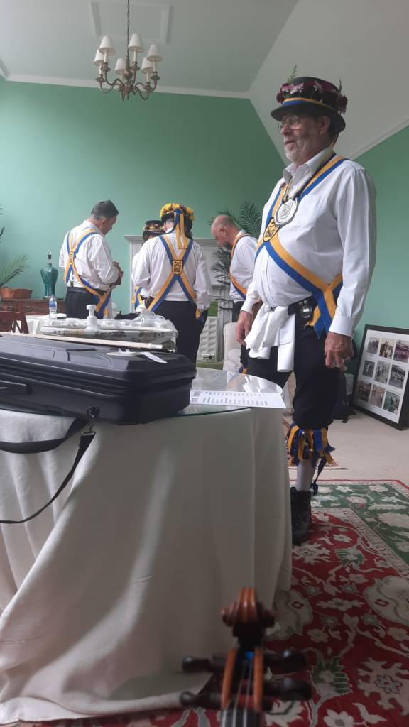 Mustered on the gravel outside the front door (not the Men’s favourite dancing surface), at 10 am MST (Morris Standard Time, which is BST plus or minus 30 minutes depending on the weather and proximity of licensed premises) the musicians played the opening bars of Tuesday Night (Bledington), and we were off.