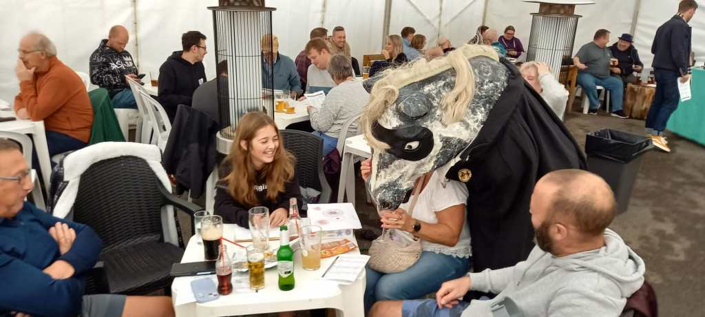 Squire, with great wisdom, had programmed 4 sessions and this worked well. Keeping us fresh and the audience involved. Due to sad and unforeseen circumstances we were missing a few dancers, but everyone stepped up (ho ho), especially Mike and Phil, also our musicians (bless ‘em). The Fool bellowed and embarrassed, tickled and romped – the Horse roamed freely around the tables and behind the bar – not all of the barmaids loved him…. Plenty of opportunity to guzzle beer, every one sampled was of interest and in excellent nick.