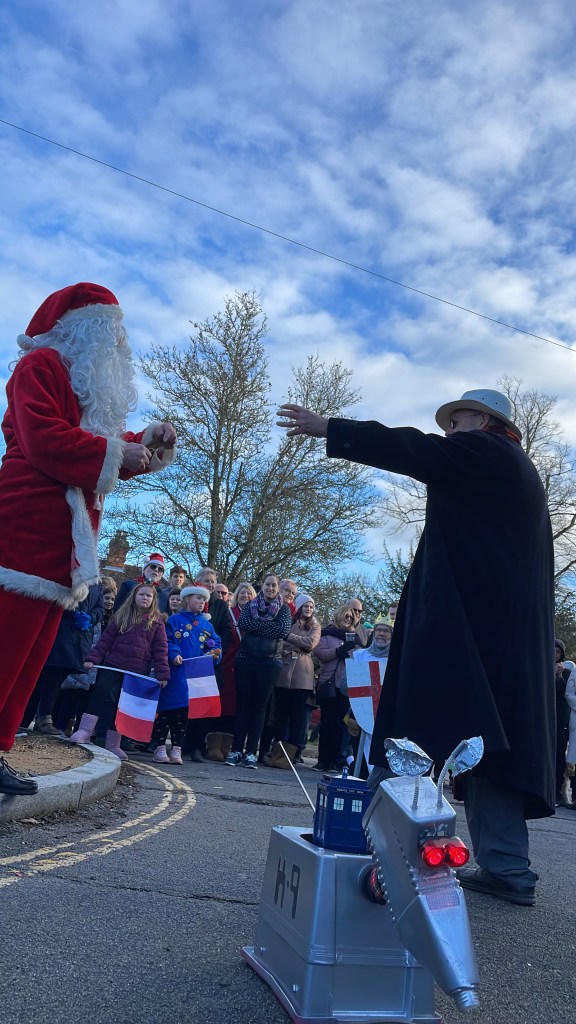 Lovely winter sunshine greeted us for our biggest and best day of the year. Great colourful top hats, Christmas decorations, most illuminated. The Fool’s Hat a sorry exception.