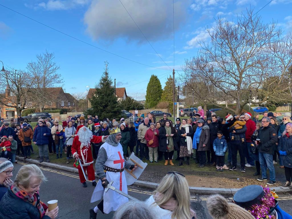 The dance programme was full of dances with Christmas tunes, with occasional ripples of singing form the crowd as they recognised the tunes – might have to follow that up next year… The dancing was done with spirit, any technical failings were lost in the all pervading joie de vie. Lots of new Mummers hammed it up excellently with lots of enthusiasm. Our lovely crowds seemed to love it! Very large crowds with many old friends and lots of children (great) – very good humoured, eager to participate and very generous when the collecting hat and horse went round (thank you). Some shorts videos at the bottom!
