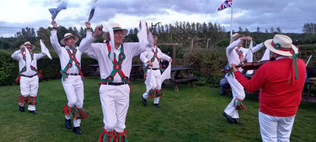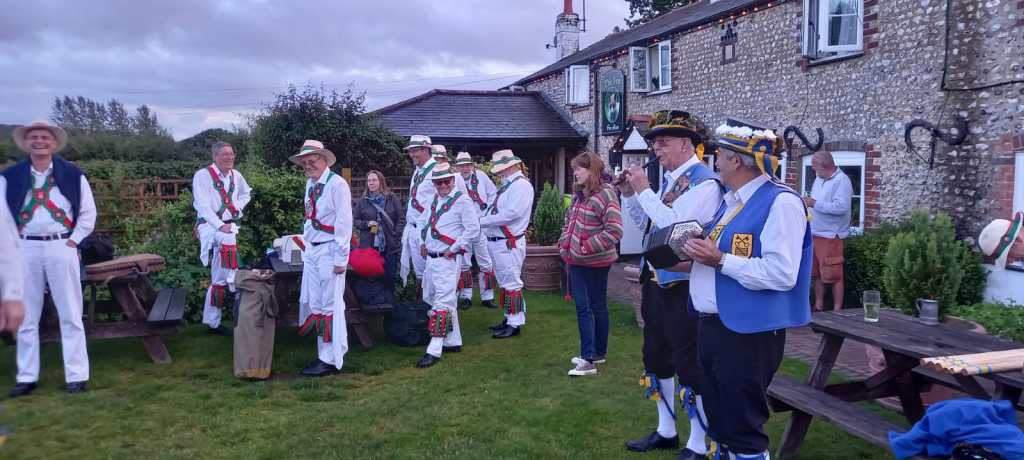 It had lashed it down all day, but the sun came out and our grassy dance area was fine. Guests of Winchester MM. We were ready for 7:30, WMM arriving for 8:00…small programme mismatch! Steve went all Father Christmas on us, dispensing ‘clear out’ gifts to all.