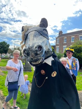 Next stop was the Black Dog brewery. What a place! Great selection of local brewed beers (the milk stout was excellent). A period car rally with lots of audience meant we danced in tight spaces but were very well received. The manager stated everyone with bells-on had a free pint. We may well be back sometime! The Horse was almost eaten alive by the many dogs in the audience.