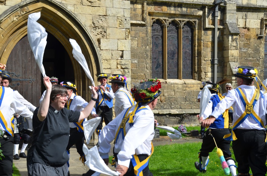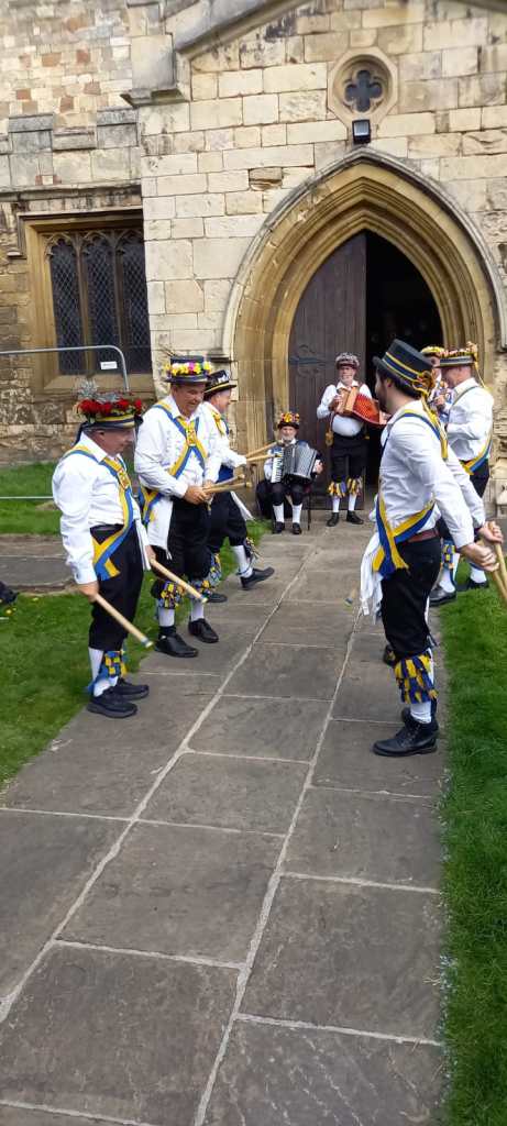 The vicar was superb. Eleanor was a true orator and led us through an entertaining service of celebration of the Morris, I’m sure Father Kenneth Loveless would have been pleased to see his ‘Healthy Heathens’ in Church. A few lively dances after the service outside the church saw us finish with Bonnie Green Garters.The vicar being eager to join the dance at the start however by the end had her reaching for her inhaler not knowing how strenuous Morris dancing could be.
