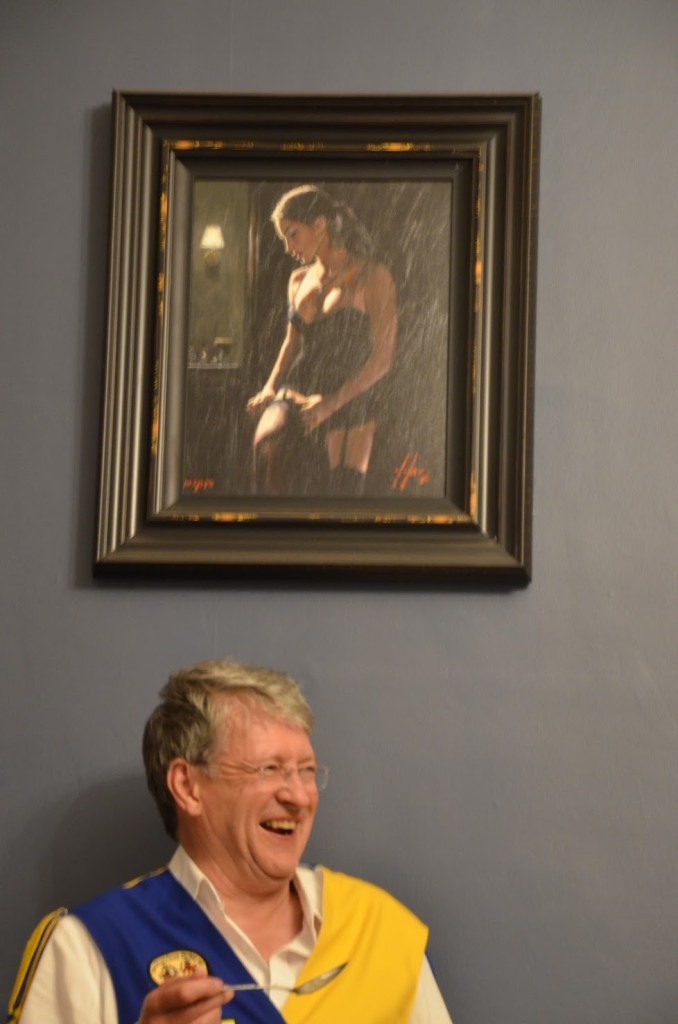 Everyone piled into Tom’s motorhome for coffee and munching. Perfect. All participants arrived for a 12 pm start at the Sloop. This was the first stop of an all day session for our former Foreman of music, Rod. He had his accordion in tow and was well pleased to be in the company of his old friends.