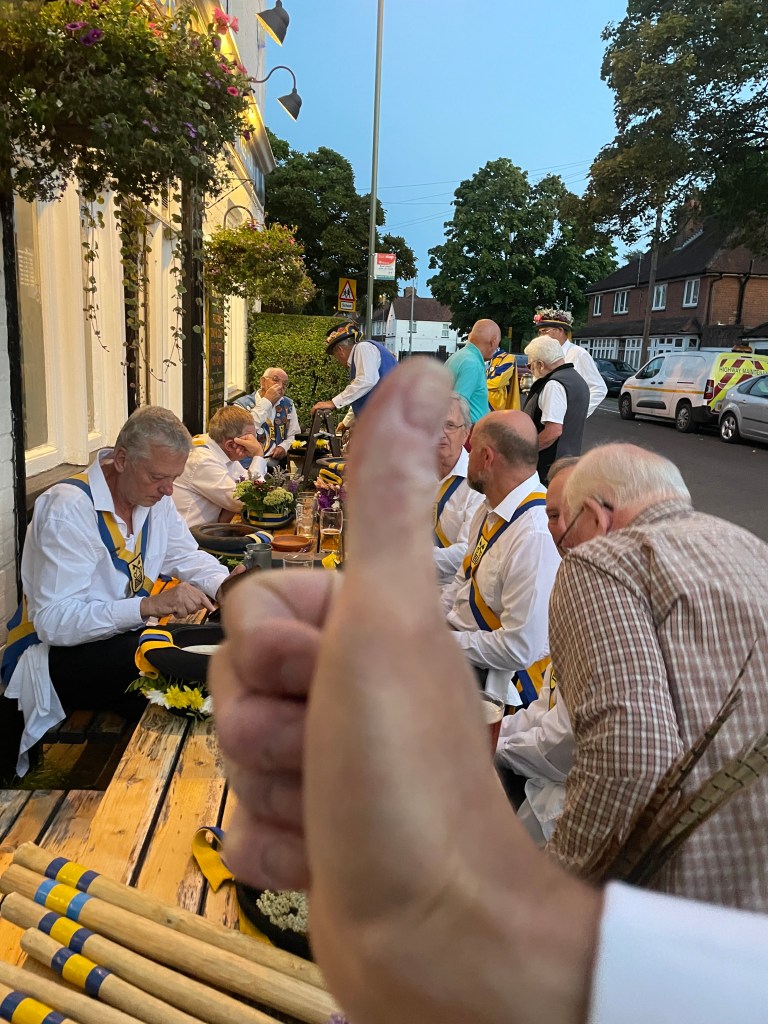 A good turnout from the lads, especially those still weary from a lively weekend dancing in Snaith. Danced out front, Fool cajoling passersby to tarry a while.