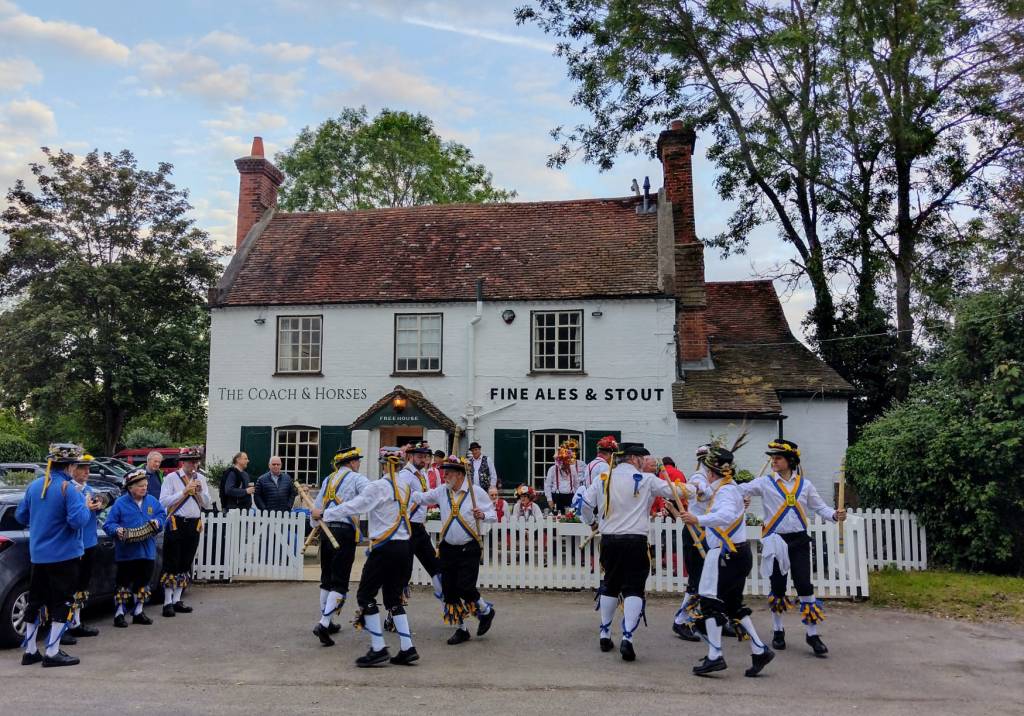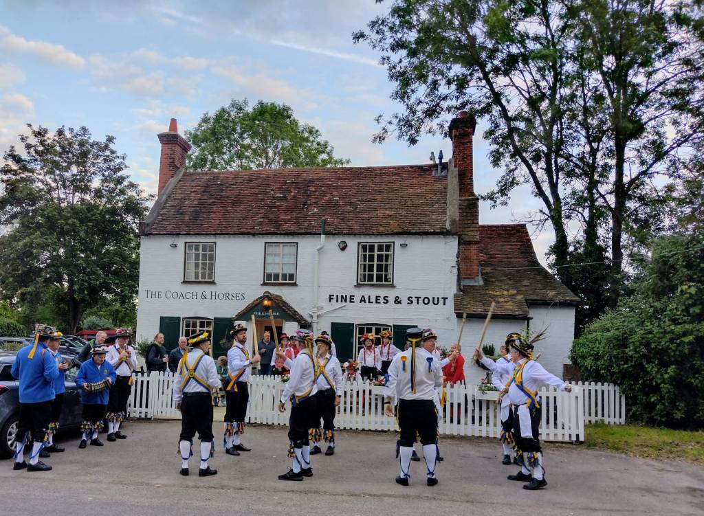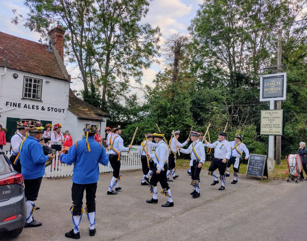 A fine evening in the beautiful village of Rotherwick, near Hook. The morris friendly Coach and Horses looked lovely in the summer sunshine, not so the Falcon, all boarded up with signs up seeking a new landlord.