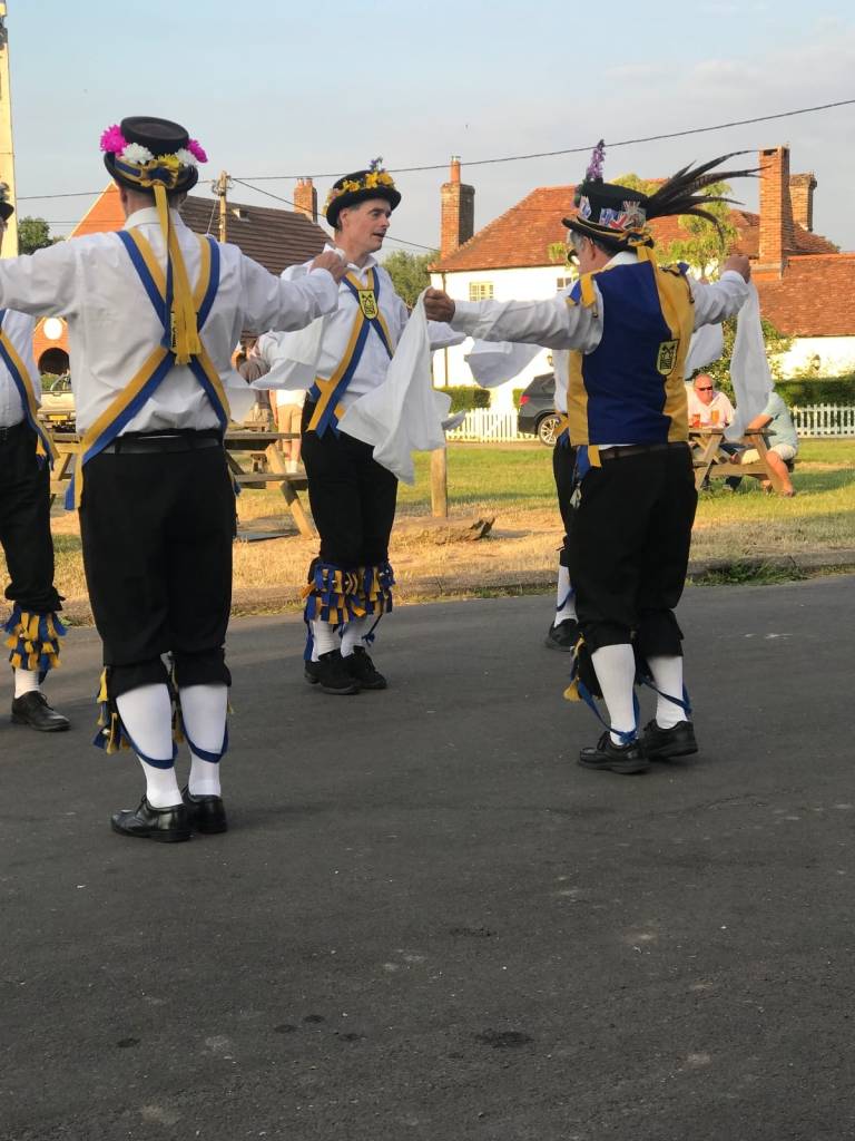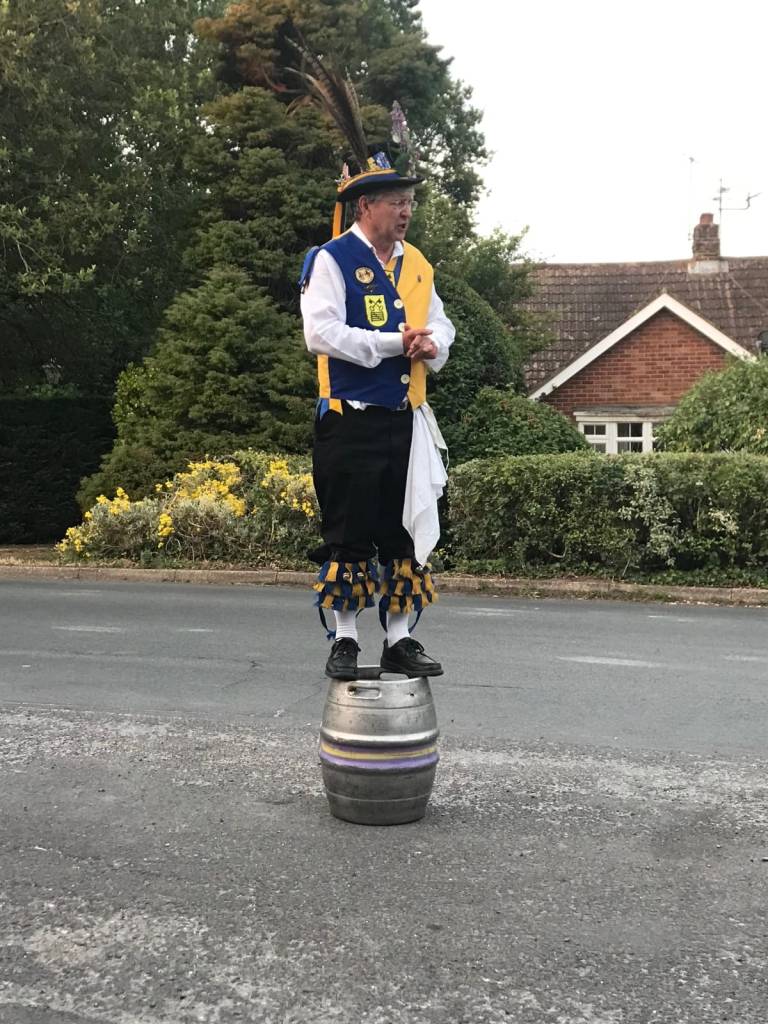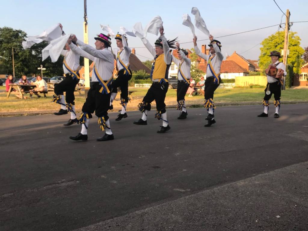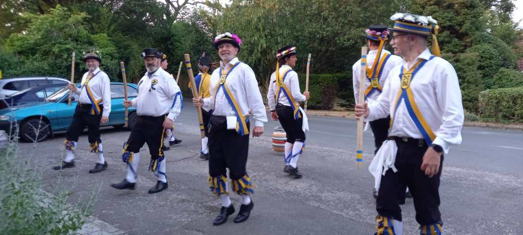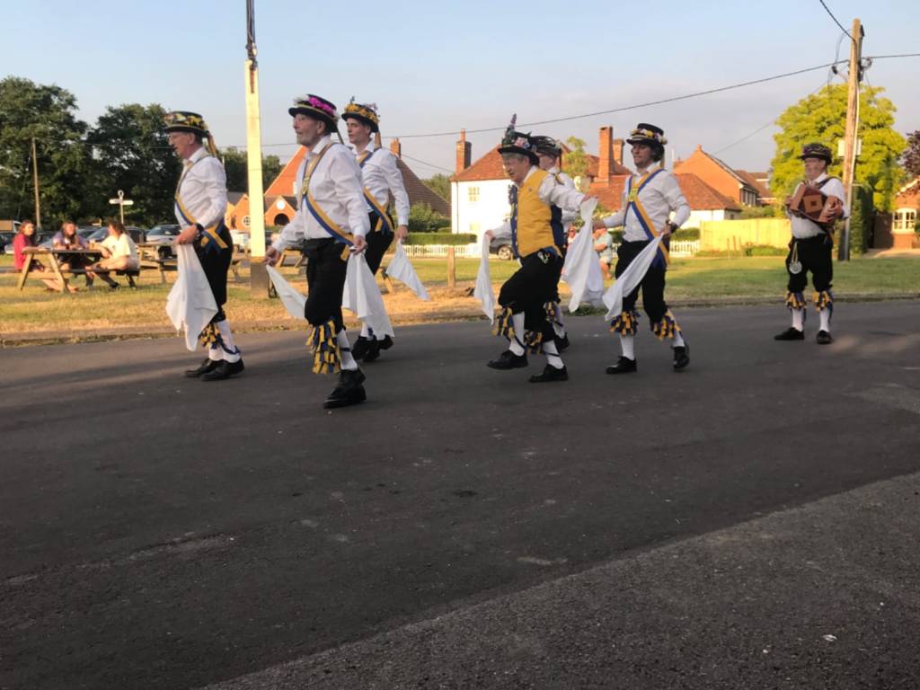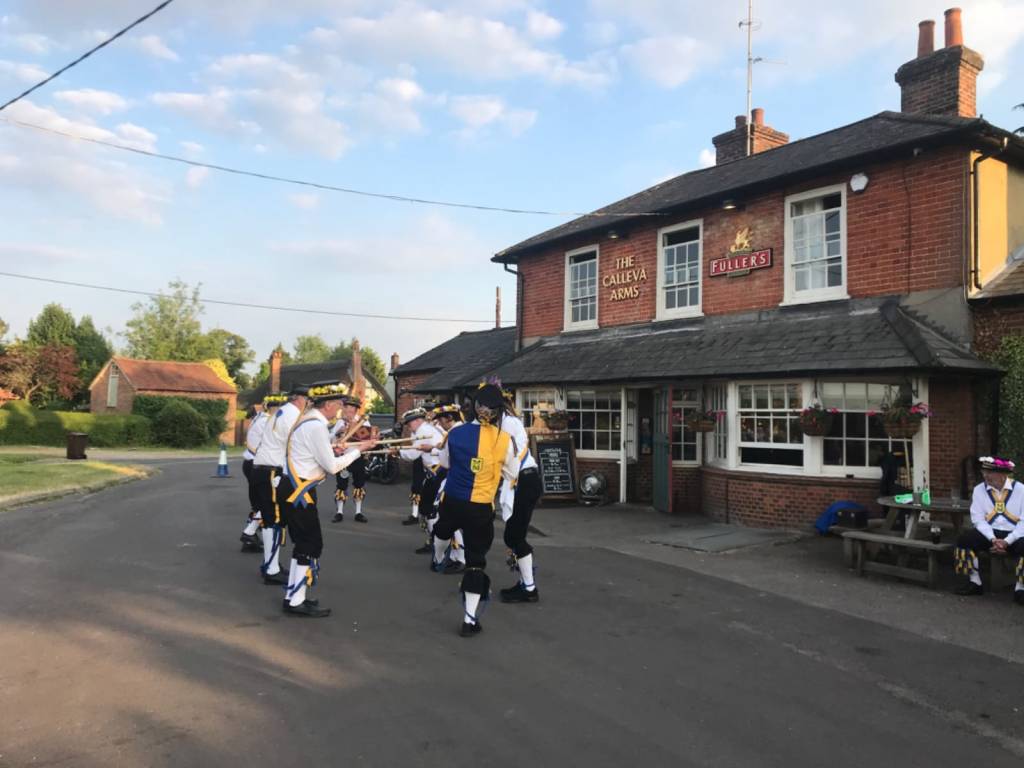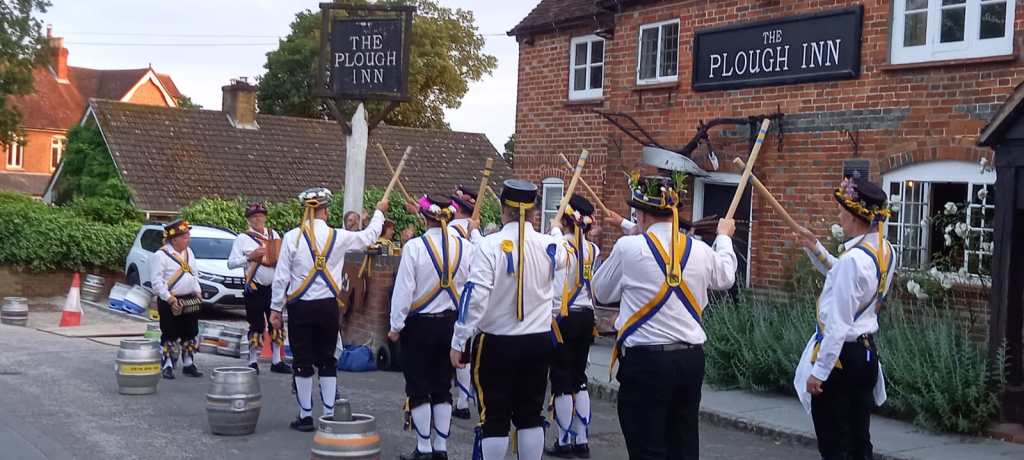 The sun shone, a beautiful evening with the lovely Calleva Arms and it’s punters basking in the evening glow. Andy had a good chat with them and they soon warmed to our antics – especially the equine attention! A couple of competent sets with the Squire producing a testing programme. Always sort of aware that it is Kennet MM’s home pub.
