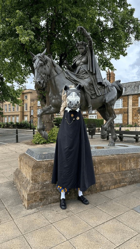 On Saturday morning we assembled bright and early for the traditional Wetherspoons breakfast at The Exchange in Banbury. We were obviously expected as the staff had kindly reserved a whole section of the pub just for us. Filled to the point of exploding we made our way to Banbury Cross for the first performance of the weekend. Monty was in fine form acting as our Fool causing mischief and mayhem as usual.