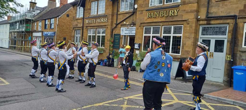 The streets of Banbury were relatively quiet and so we headed off impromptu down to the market. Fortunately, there was a bit more of an audience and so we performed a few more dances before heading to The Coach and Horses for …. yes you’ve guessed it …more beer! (Is there a theme developing here?!)