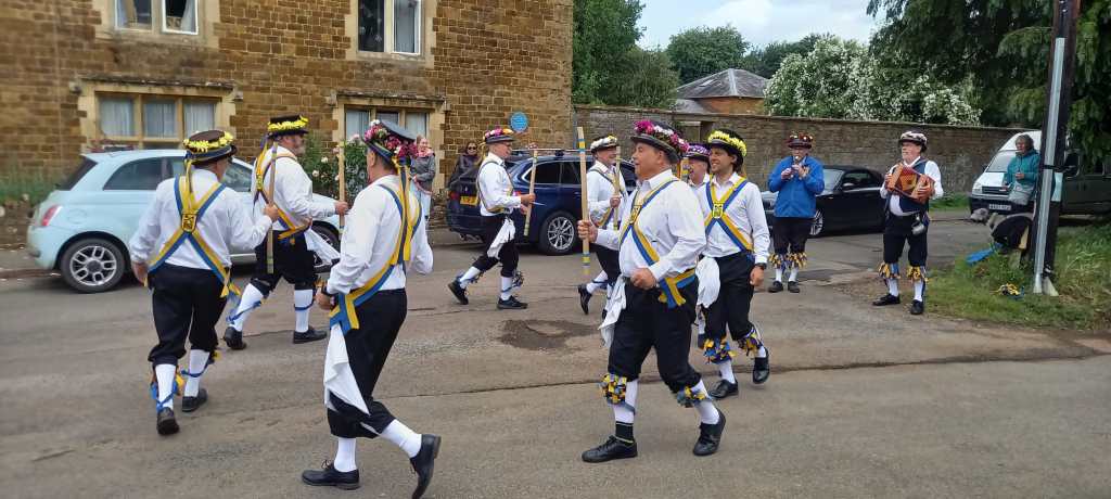 Sunday morning was an early start as we had to take down the tents and pack away our kit. Back to the brewery for breakfast and a cup of tea or coffee (no not beer this time!). Then it was off to one of the ancestral homes of Morris dancing – Adderbury. We were treated to a fantastic walking tour by our local guide Keith who seemed to know absolutely everything there is to know about this beautiful village. It was great to hear all about the people who lived in some of the old houses and the history of Morris dancing in Adderbury. We stopped off for a brief performance outside Le Hall Place – the home of Janet Blunt who helped collate the Adderbury tradition dances back in the early 20th century.