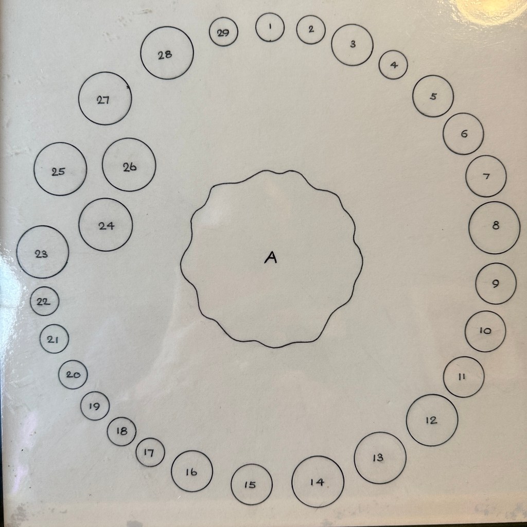 To celebrate our 25th Anniversary, Ross Healey and Rod Crane put together a panel showing the badges that had been produced over those early years. For a time this was exhibited in Yateley library and is currently stored in our archive. To make it more accessible a picture is shown below followed by a (much corrected!) key to the topics depicted and the artists responsible. You will see that Brian Cresswell was our principal in house artist. When he retired from the side Tim Lloyd took over the duties. You can also see examples of our programme designs here (under construction)